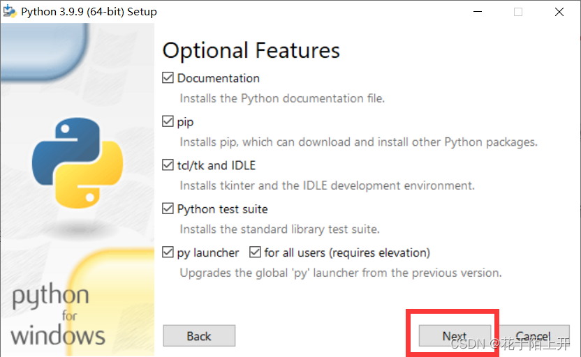 选择下面几个选项点击[Next],下个页面再点击[Install]