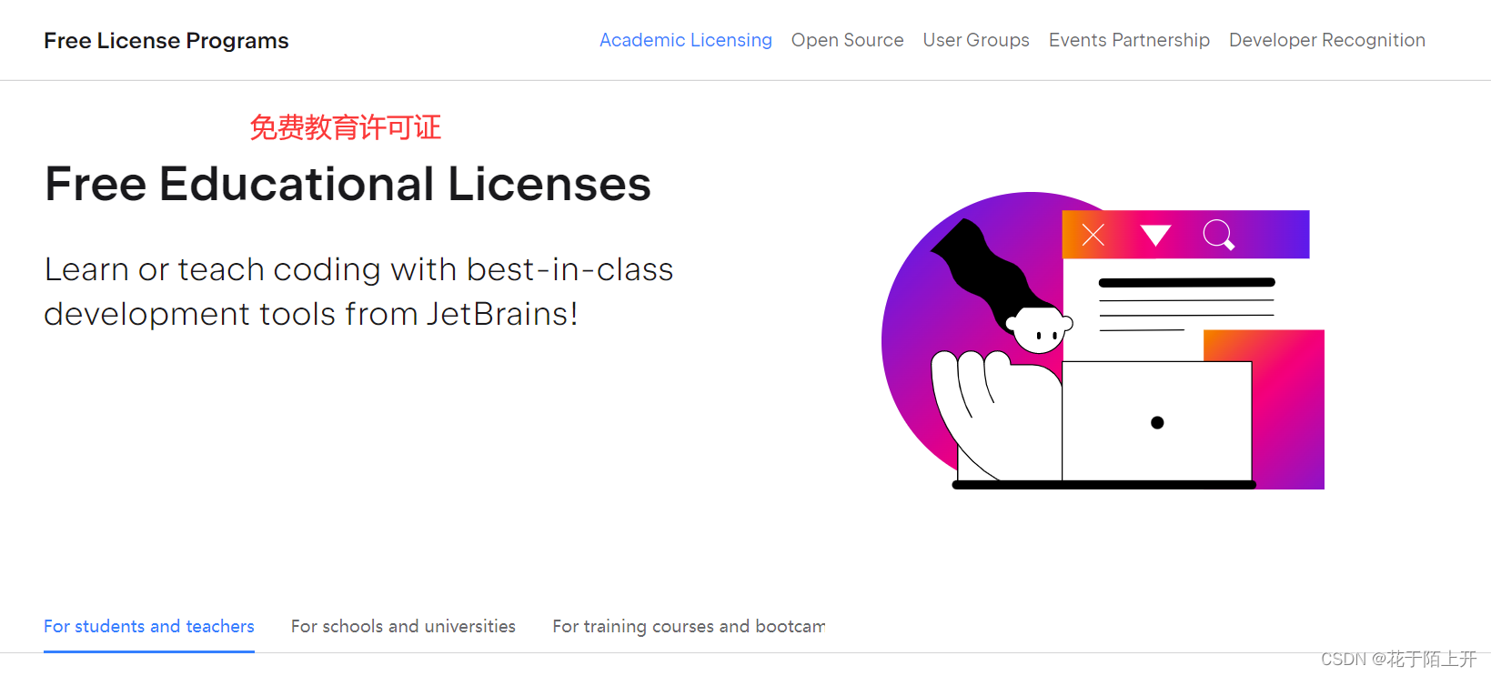 - 等待下载完成的过程中学生可以直接通过下方官网链接申请免费许可证,方便以后继续使用 PyCharm Professional 。