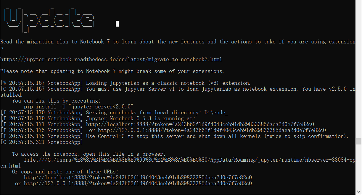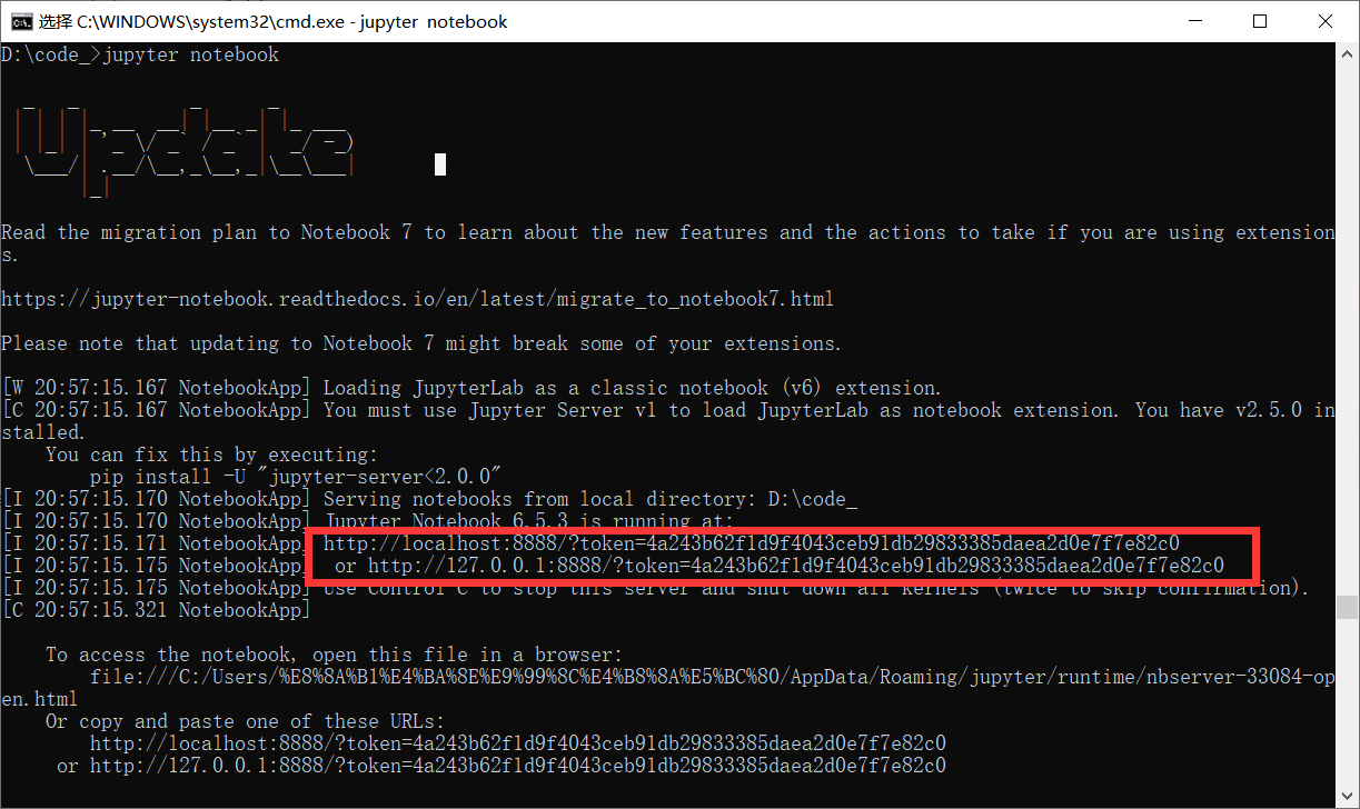 下载完成后,通过cmd在对应目录输入命令以当前目录为项目根目录启动Jupyter Notebook。